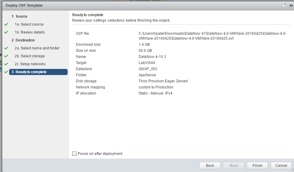 Review the detail and click next, Please do not change disk size on appliance configuration. Leave the default value from the OVF setting.