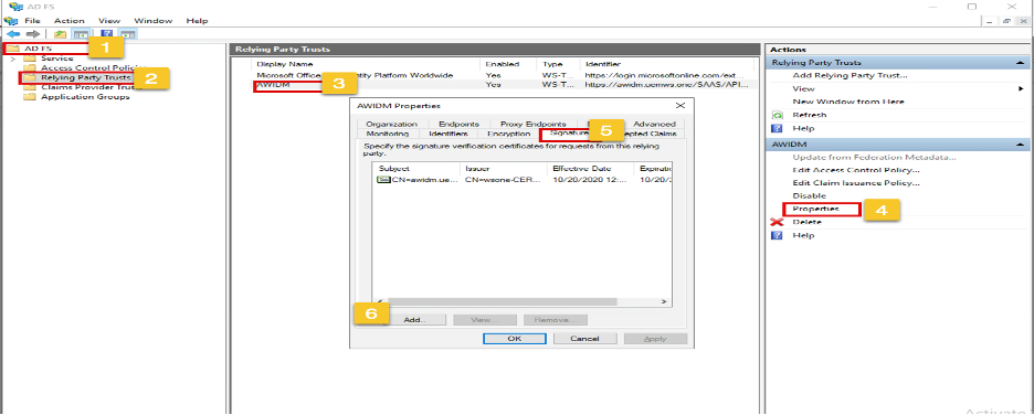 3. Update Relying Party Trust Signature Certificate Open ADFS and go to Relying Party Trust, Select IDM > Properties