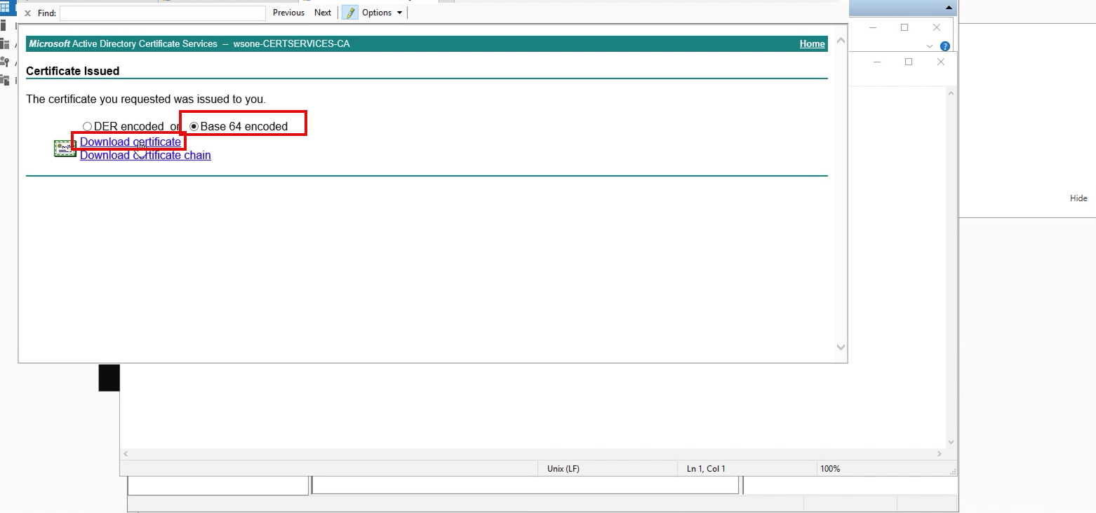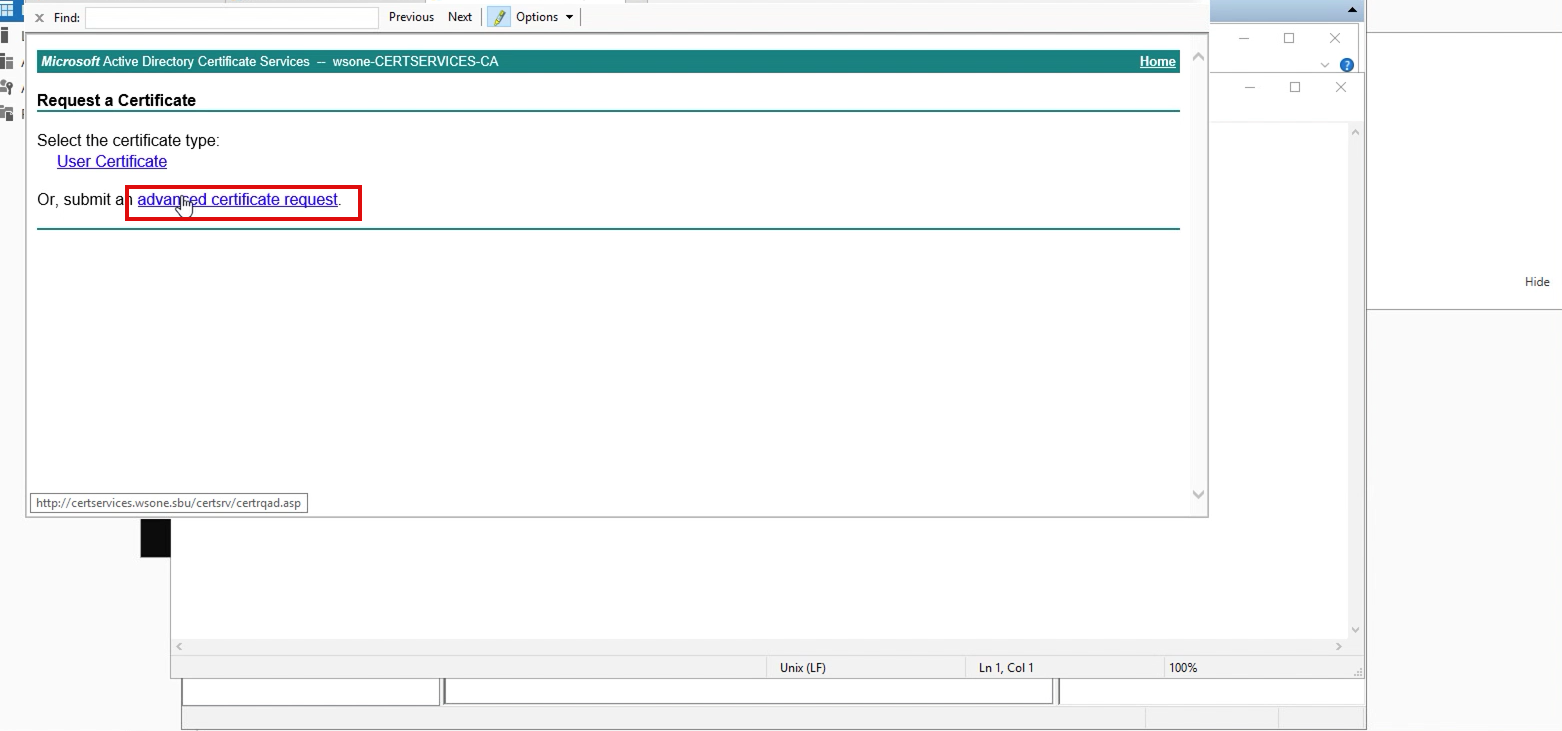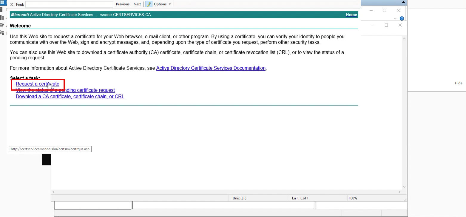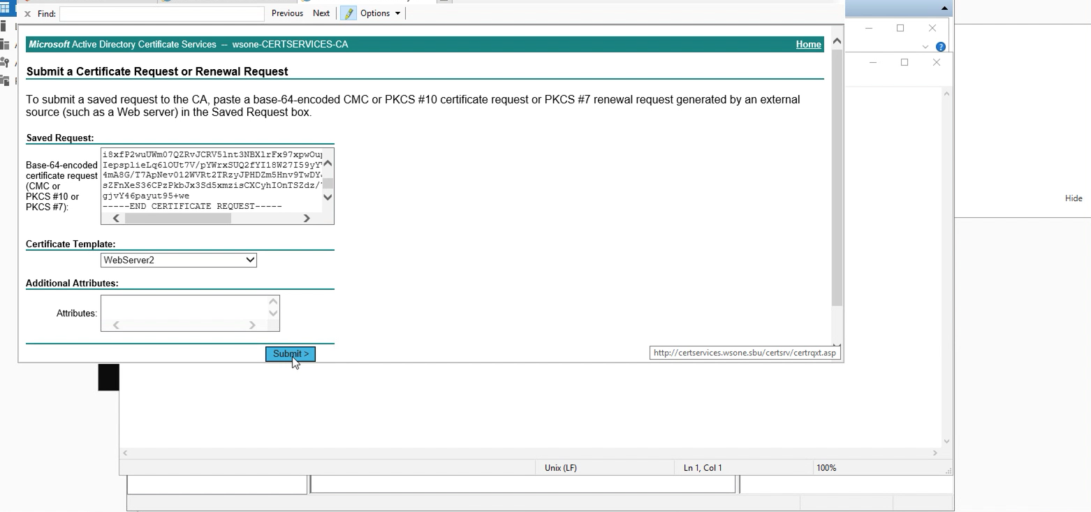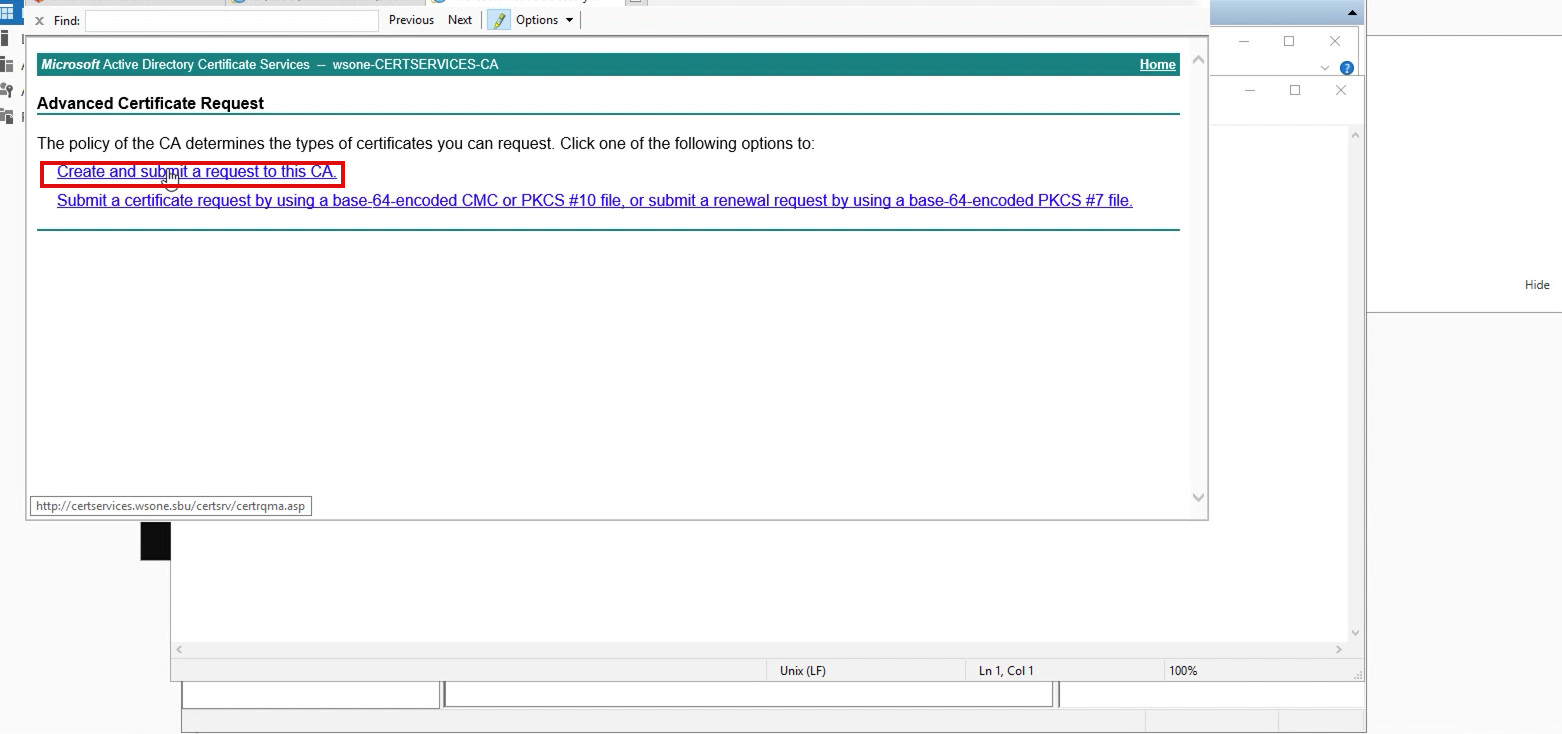 The next step in this process is to get the signed certificate from the Cert Authority; in the below example, we will use Mircosoft CA.